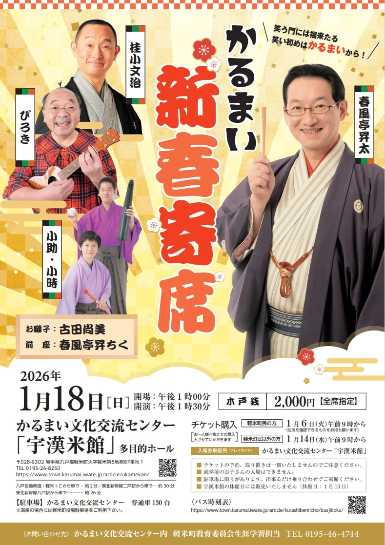 1月18日(日)、かるまい文化交流センターで「かるまい新春寄席」を開催します🎍