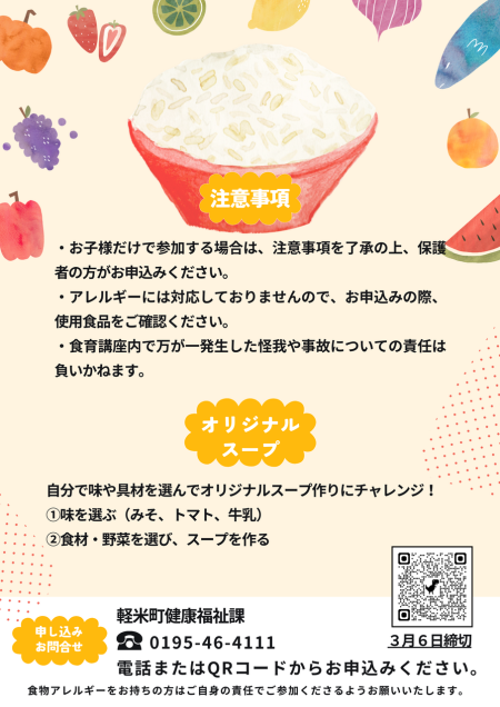 ・食育講座内で万が一発生した怪我や事故についての責任は負いかねます。