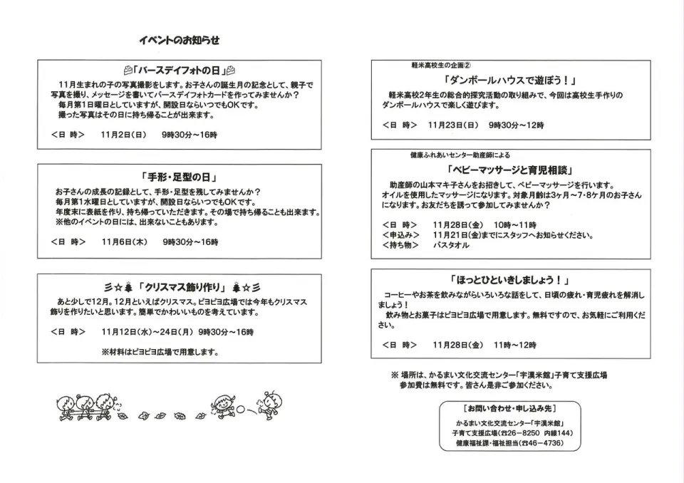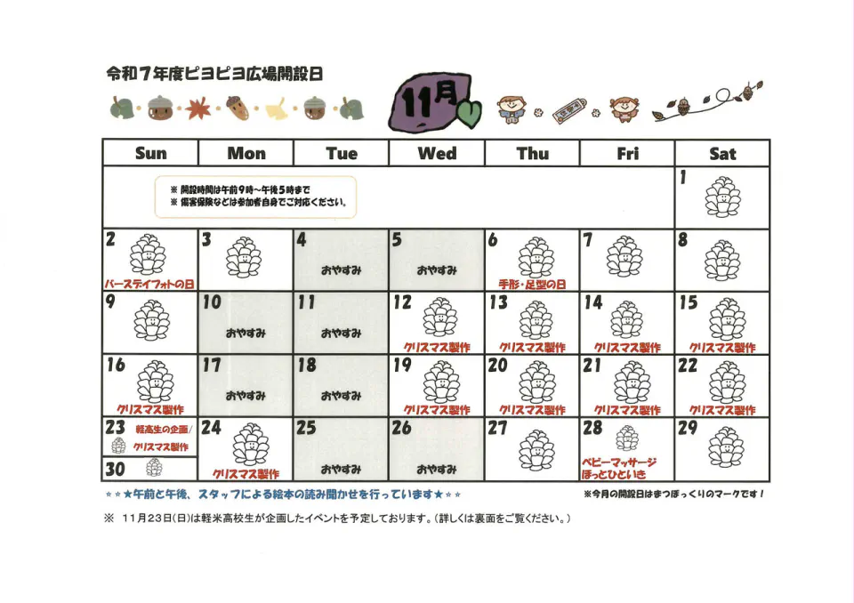 ピヨピヨ広場🐤11月開設日とイベントについて