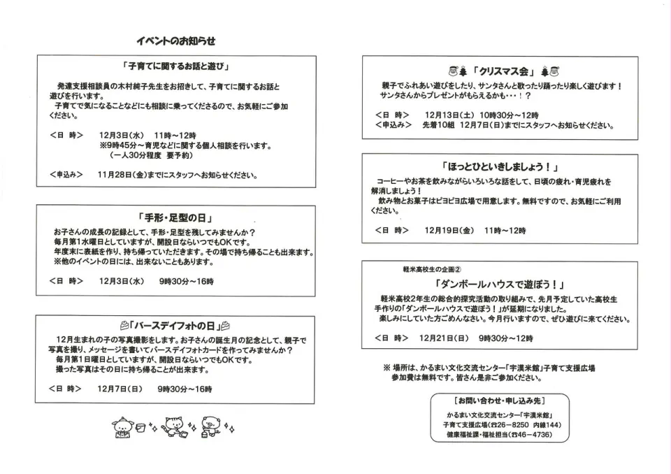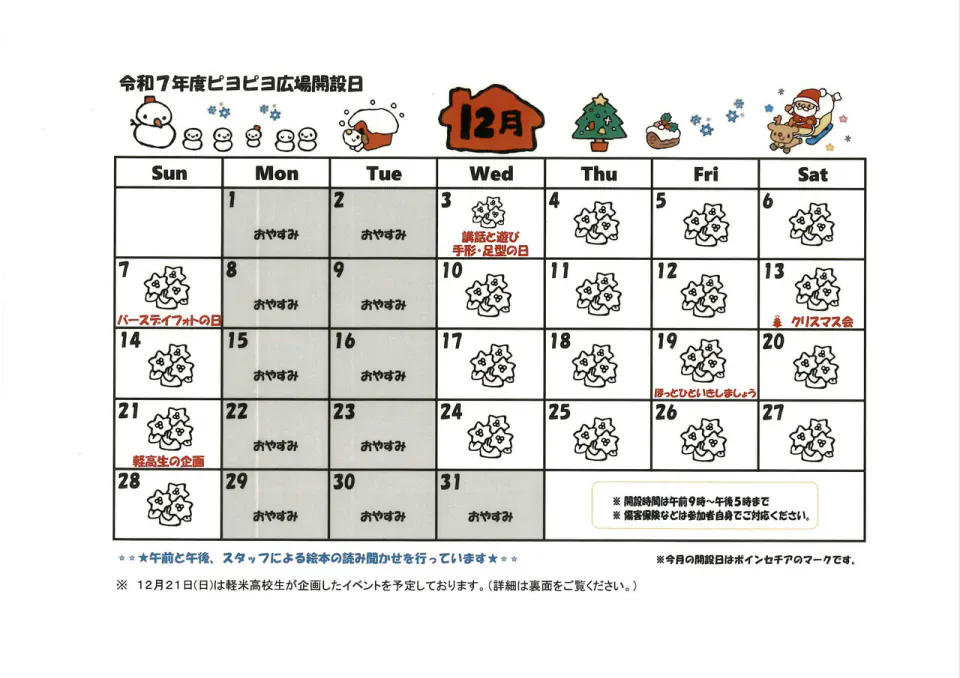 ピヨピヨ広場🐤12月開設日とイベントについて