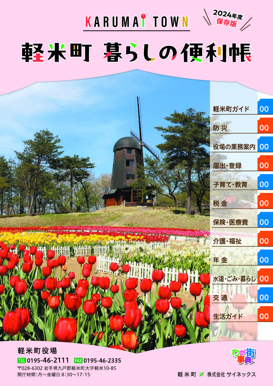 軽米町では、町民の皆さんの生活に便利な行政情報を1冊にまとめた「暮らしの便利帳」を株式会社サイネックスと協働で発行します。今回の内容は、令和6年4月発行の改訂版となります。令和8年4月に発行し、全戸配布を行う予定です。