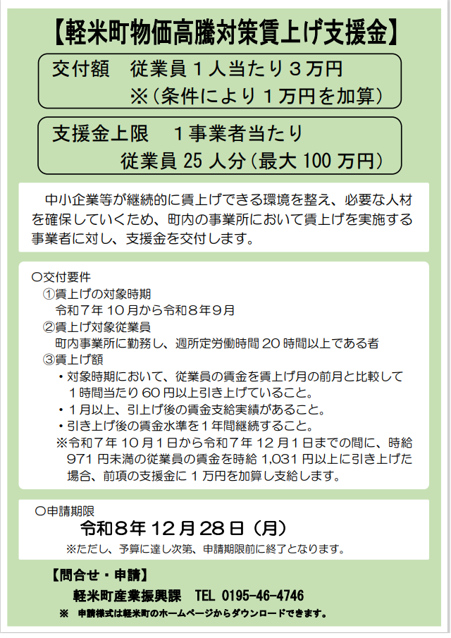 軽米町物価高騰対策賃上げ支援金のお知らせ