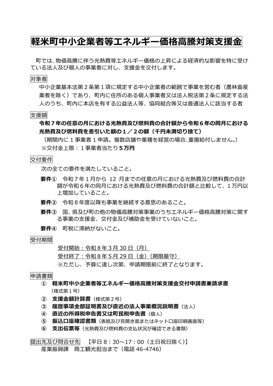 軽米町中小企業者等エネルギー価格高騰対策支援金のお知らせ